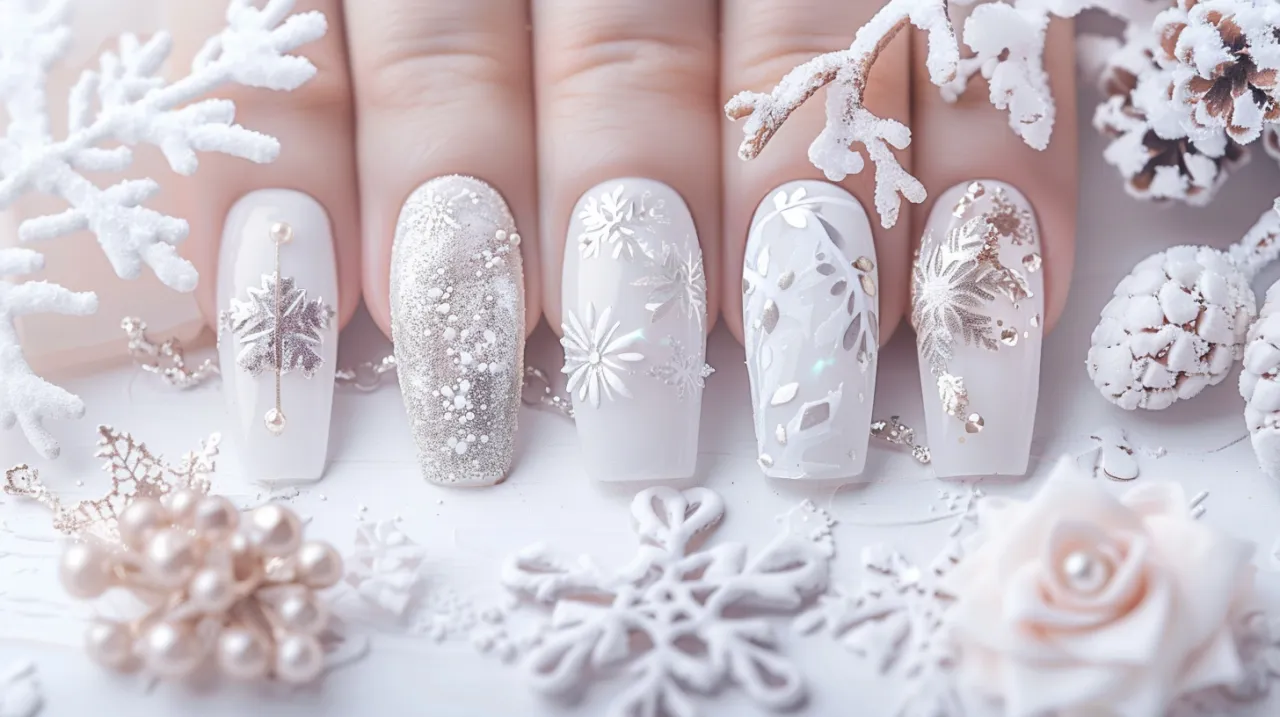 Świąteczne inspiracje dla biało-srebrnych paznokci